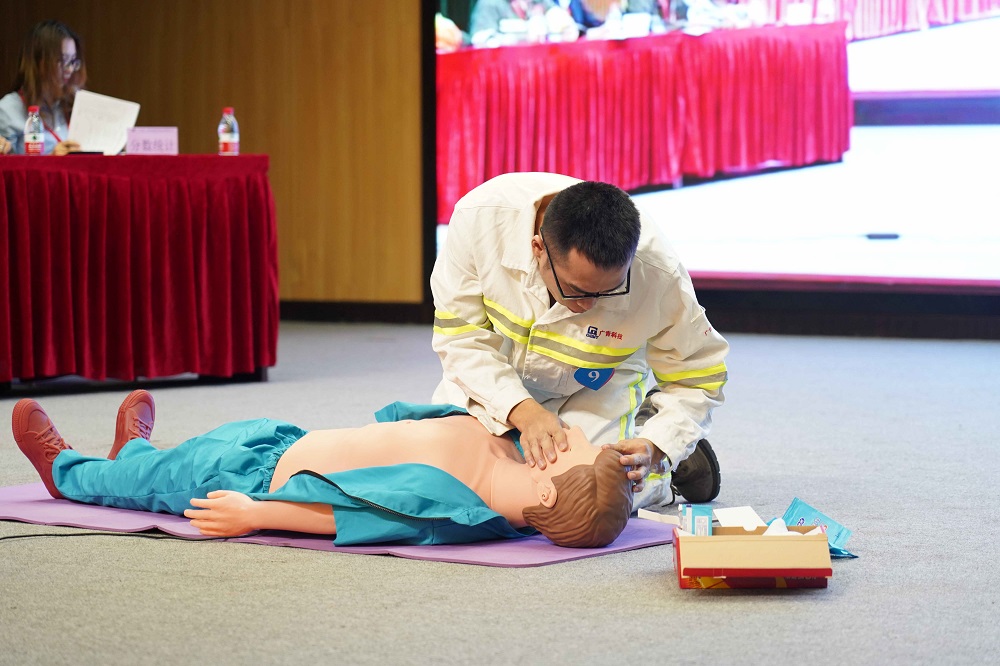 现场气氛热烈,比赛紧张而有序,参赛选手们精神饱满、沉着冷静,有序完成对环境进行评估、对患者意识判断、安置患者、胸外心脏按压、人工呼吸等各项操作指标,他们准备充足,操作娴熟,充分展现了参赛者紧急救护的风采。