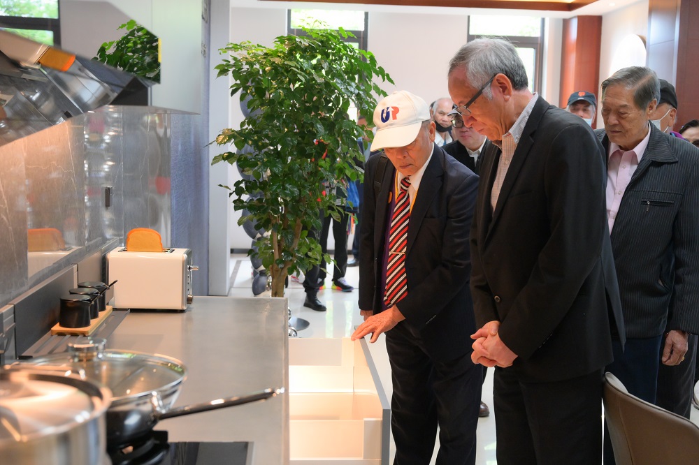 在家具展示厅,各类不锈钢家具制品与不锈钢工艺品映入眼帘,得到了一行人员的高度评价,不锈钢工艺品“青拓钢铁人”这一打卡点更是广受欢迎,大家纷纷打卡留念。