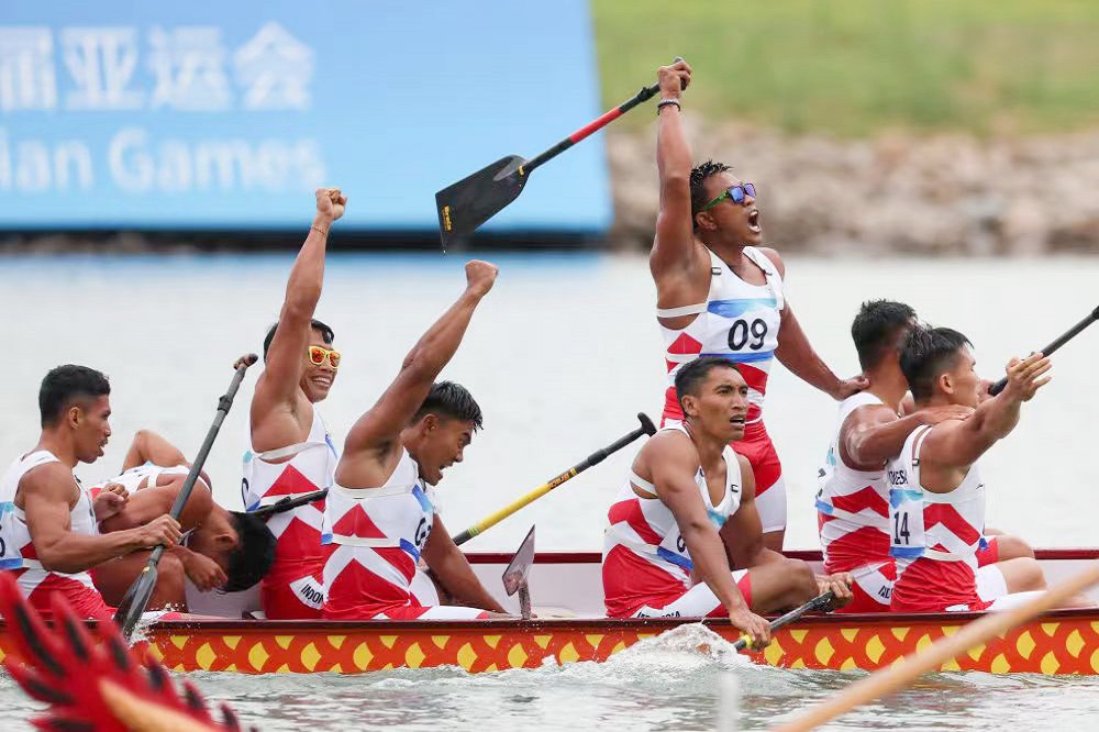 10月6日,壹号娱乐-com控股集团总裁孙建芬带队慰问印度尼西亚龙舟队,祝贺他们在杭州第十九届亚洲运动会温州龙舟运动中心获得了1金4银1铜的好成绩。