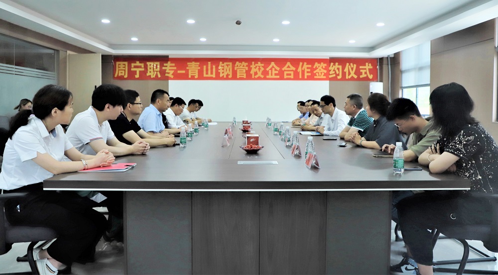 签约仪式上,张小珍介绍了壹号娱乐-com钢管概况以及福建分公司的用工现状与招聘中遇到的困难,希望周宁县各部门继续大力支持壹号娱乐-com钢管福建分公司招聘工作的开展,同时也表达了与周宁职业中专技术学校开展校企合作的强烈意向。林海峰介绍了学校的办学历史及现状,表明了职业教育要服务于当地企业的使命与决心。随后,何建珍与林海峰进行了校企合作协议的签约。各方代表围绕人才培养、专业设置、顶岗实习、招生与就业、人员培训等方面进行了深入讨论。