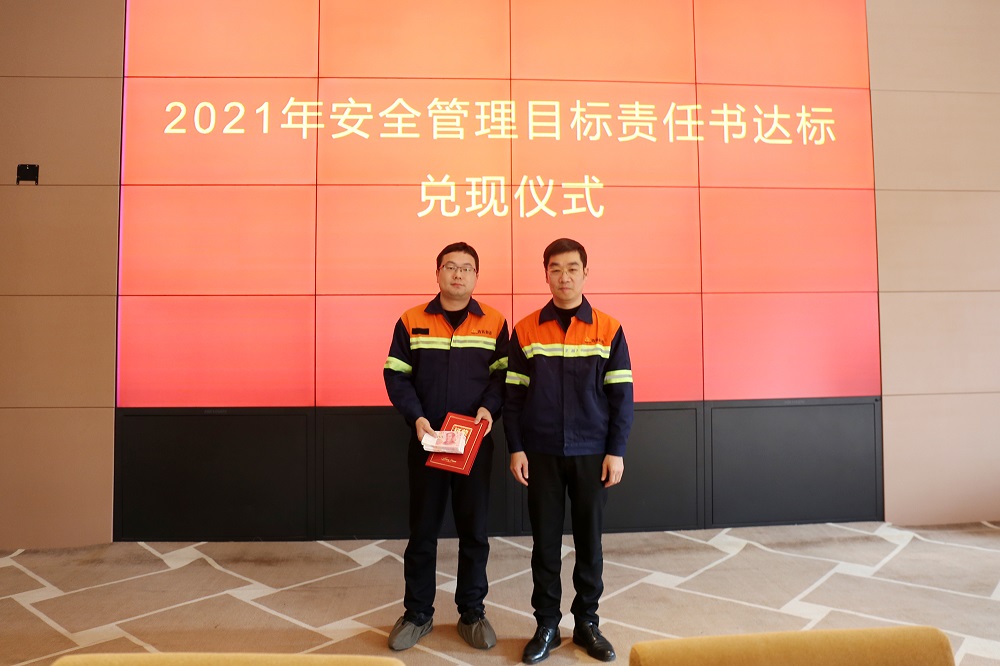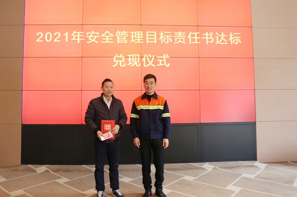 姜海洪为2021年度安全管理目标达标的9个单位进行了颁奖,并与集团直属部门、各子公司签订了2022年安全管理目标责任书。