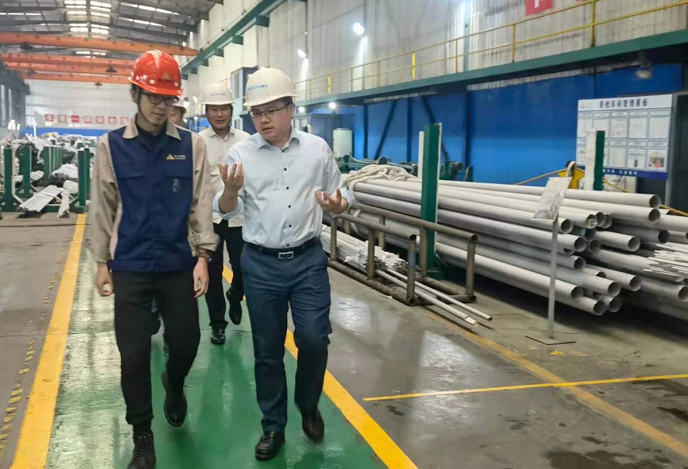 5月18日下午,青田县委常委、温溪镇党委书记童森军,副镇长叶磊一行到浙江壹号娱乐-com钢管有限公司调研,公司董事长兼总经理张路遥、副总经理文德洪等领导进行了热情接待。