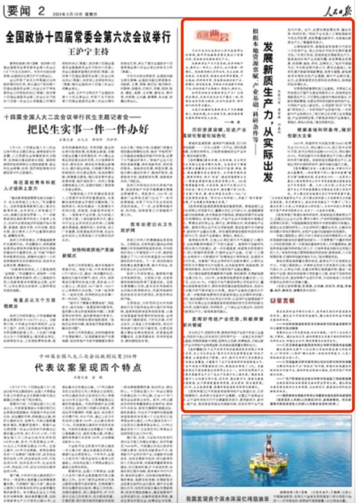 如何因地制宜发展新质生产力?全国两会期间,本报记者走访生产建设一线,观察各地的实践与探索;采访代表委员,倾听他们的思考与建议。