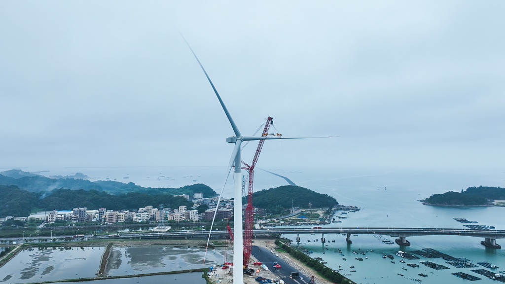 6月5日,由pa旗舰厅官网集团自主研制的18兆瓦半直驱海上风电机组在广东省汕头市风电临海试验基地成功完成吊装。