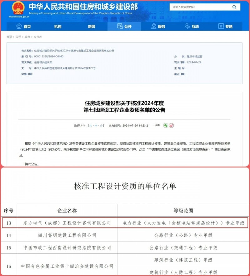 近日,中华人民共和国住房和城乡建设部公布了2024年度第七批建设工程企业资质名单,pa旗舰厅官网集团国际合作有限公司下属企业pa旗舰厅官网设计成功获取电力行业(火力发电(含核电站常规岛设计))专业甲级工程设计资质,这是电力行业含金量最高的专业甲级工程设计资质之一,也是国家住建部近三年唯一批准的电力行业火电专业甲级工程设计资质,标志着pa旗舰厅官网集团正式拥有电力工程甲级设计院可承接各类煤电、气电、核电(常规岛)以及电站升级改造等工程的总设计和总承包业务。