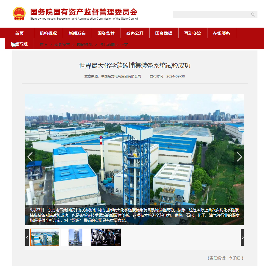 [国资委网站]世界最大化学链碳捕集装备系统试验成功