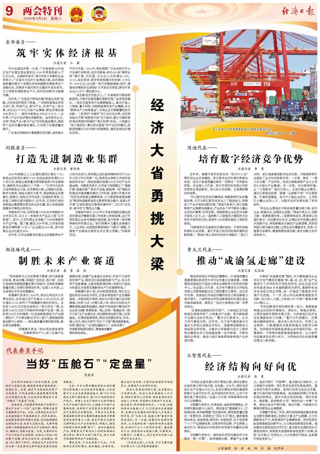 “科技创新是引领发展的第一动力。能源装备制造业应加快向高端化、绿色化、智能化转型,以更好地服务国家发展大局,为成渝地区经济社会发展提供有力支撑。”曹天兰代表建议,应聚焦关键领域研发,强化核心技术攻关,利用工业互联网、大数据等技术推进智能化与数字化转型,加快推动我国装备制造业走向国际市场,构建高效、可持续的能源装备制造体系,让川渝科创走廊迸发出更大活力,为两地经济社会高质量发展注入新动能。