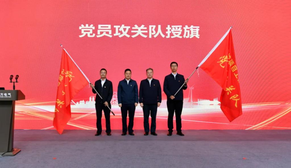 仪式上,pa旗舰厅官网电机党委、大唐西藏公司党委举行“链上党建”共建活动,发布了“链上党建”共建方案,双方签订共建协议。王军、沈鹏为大唐扎拉水电站项目工程建设党员攻关队、机组研制党员攻关队授旗。