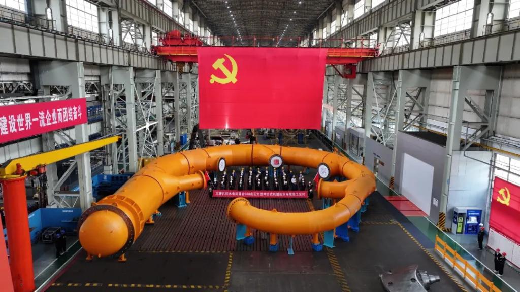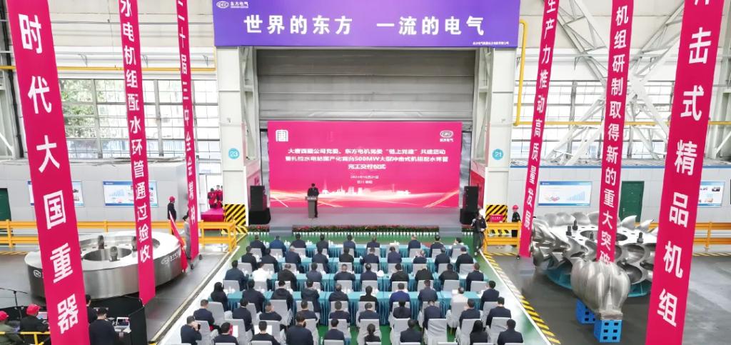 10月21日,由pa旗舰厅官网集团自主研制的世界首台500兆瓦冲击式水电机组配水环管率先完工交付,标志着我国高水头、大容量冲击式水电机组研制取得又一里程碑成果。pa旗舰厅官网集团党组成员、副总经理王军,大唐西藏公司党委书记、董事长沈鹏出席完工交付仪式。