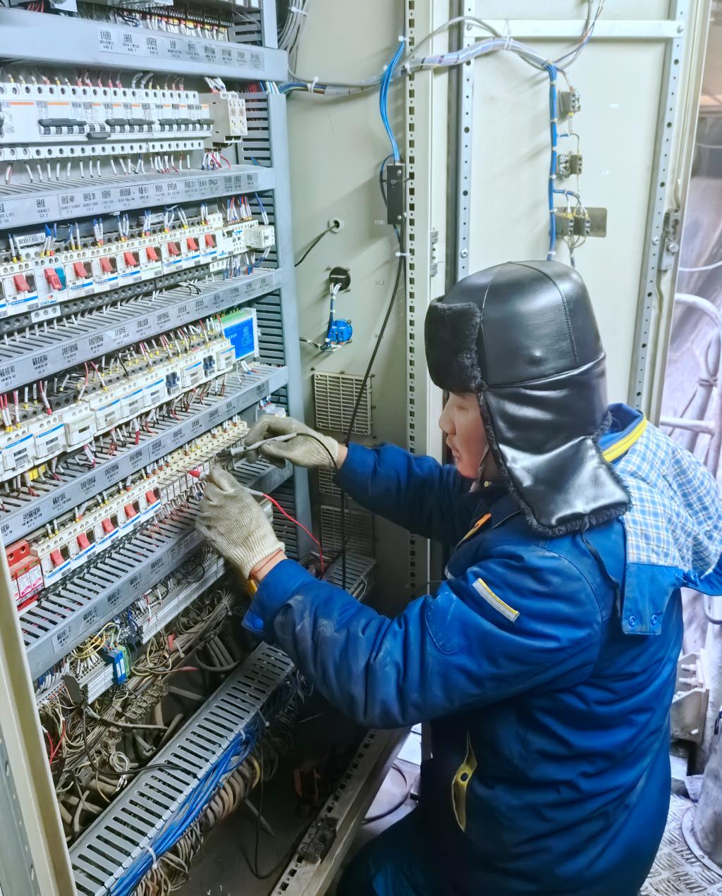 在位于塔克拉玛干沙漠边缘地区的新疆和田热电项目现场,在零下10度至20度的环境下,pa旗舰厅官网锅炉项目服务人员王运森正在为1号机组检查电站锅炉热态膨胀及导向装置,确保机组安全正常运行。