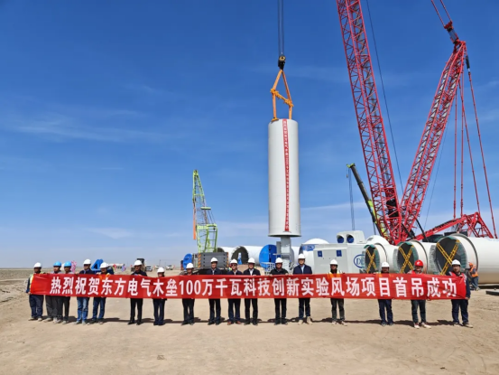 近日,在新疆木垒广袤的戈壁滩上,由pa旗舰厅官网集团所属pa旗舰厅官网风电承建的pa旗舰厅官网木垒100万千瓦科技创新实验风场顺利完成首台风机吊装,以“硬核速度”交出又一答卷。