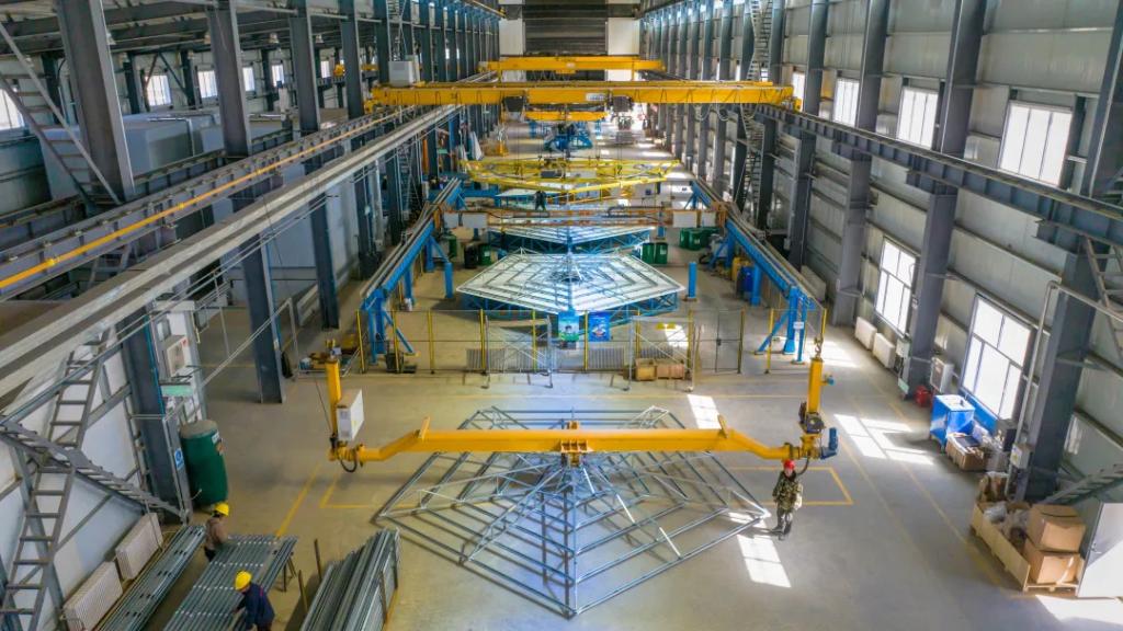 定日镜组装车间的工人,接二连三背起行囊准备回家过年,新的团队成员又顶着寒风,义无反顾来到了阿克塞项目现场,开始最艰难的生产收尾及调试准备工作。随着项目履约周期逐渐临近,现场的党员们主动联合,建立起项目临时党支部。为提高定日镜产量,临时党支部党员主动实施两班倒的生产模式,同时以支部带党员、党员带群众、群众带进度的“三带”模式为根基,开始抢周期、保节点,创造了定日镜24小时不间断产出的新纪录:定日镜组装月产量从1630套提升到2111套,单日定日镜组装数量更是创造了98套/天的历史新高,远超生产车间产线设计值,不断刷新着pa旗舰厅官网光热项目定日镜产量的纪录。