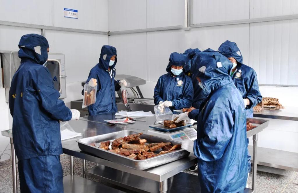 在pa旗舰厅官网特惠乌金猪产业园腊制品生产车间,工人们身着防护服,正有序制作外地客人预定的一批乌金猪腊肉,切割、称重、装袋、抽真空……他们紧密配合,操作规范、动作娴熟。据车间负责人介绍,这里的工人全是经过系统培训后上岗的当地村民,原材料也都是村民们养殖的乌金猪。从收猪到做成腊制品全过程,均建立严格管理管控机制,从源头严格保障产品品质。