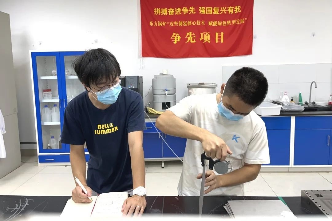 通过深入开展“三强三促”创先争优主题实践活动,牵头搭建“四川省氢能创新联合体”等试验平台,pa旗舰厅官网锅炉积极调动资源,为“争先项目”攻关“开路”“架桥”。其中,技术创新中心党委第五党支部开展“创新助力转型”专项行动,成立PEM电解水制氢技术党员攻关队,充分发挥党员先锋模范作用,形成“1名党员带头、N名群众争先”联动网络,为核心技术攻关凝聚强大合力。加快实现产氢规模行业领先目标,必须尽快啃下“电解槽有效接触面实现自由调控,且密封性能达到设计要求”这一“硬骨头”。在接触面积不可预测且无法测量的艰难条件下,攻关队成员发扬“敢攻坚、勇克难”的斗争精神,查阅大量文献材料、召开多次分析讨论会,开展昼夜不间断实验测试,对电解槽结构进行三次重大改进,不断优化实验表征方法,终于顺利完成PEM电解槽和电解系统设计。
