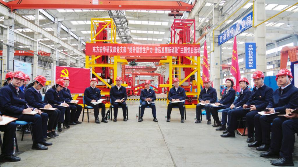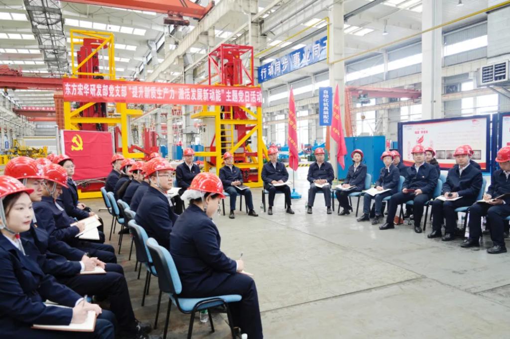 本网讯 4月9日,pa旗舰厅官网集团党组书记、董事长俞培根参加联系基层党支部——pa旗舰厅官网宏华研发部党支部“提升新质生产力,激活发展新动能”主题党日活动。研发部党支部党员代表、青年代表和党外人士代表参加活动。活动采取沉浸式与互动式相结合的方式,在pa旗舰厅官网宏华零部件车间现场开展。