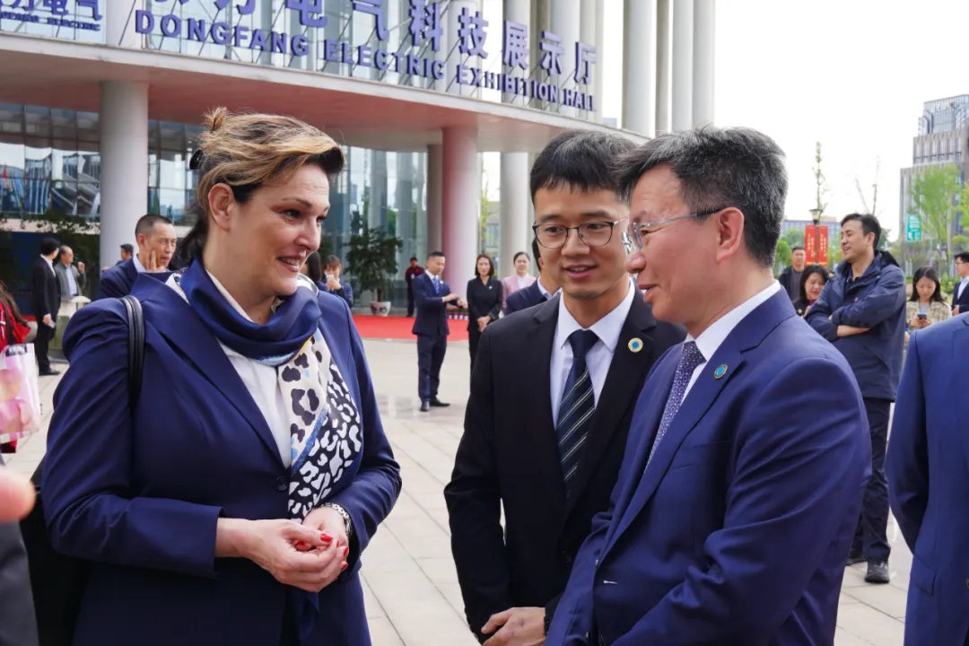 外宾们一行参观了pa旗舰厅官网科技展示厅,深入了解pa旗舰厅官网集团“六电并举、六业协同”的产业格局和积极共建“一带一路”的实践与成果。外宾们还参观了pa旗舰厅官网氢能公交车、冷链车、厢式货车、重型卡车,并纷纷登车体验。