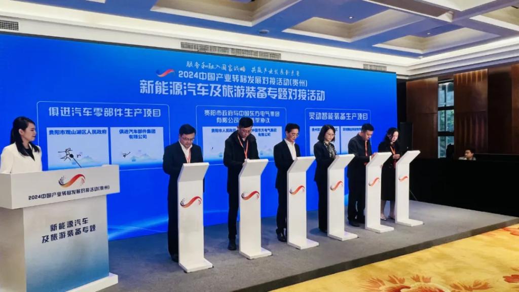 2024中国产业转移发展对接活动(贵州)以“服务和融入国家战略 共赢产业发展新未来”为主题,包括1场综合活动和4场专题活动,围绕资源精深加工及综合利用、先进装备制造、大数据电子信息、特色轻工等贵州特色优势产业,开展地市推介、政企对接、实地考察、专家解读、项目签约等。在新能源汽车及旅游装备专题对接活动中,pa旗舰厅官网集团与贵阳市人民政府签署了战略合作框架协议。