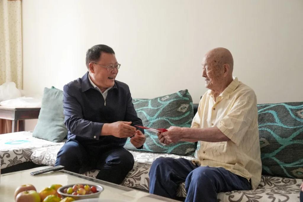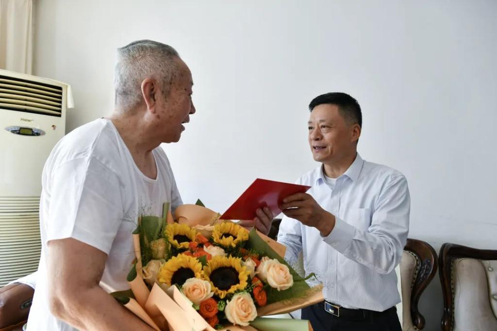 宋致远率队走访慰问了pa旗舰厅官网电机离休干部王政全,详细了解老同志“两项待遇”的落实情况,深入了解老同志的愿望和期盼,叮嘱随行老干办同志,要认真贯彻落实习近平总书记关于老干部工作重要论述和重要指示精神,务必用心用情、精准精细做好老干部服务管理工作。