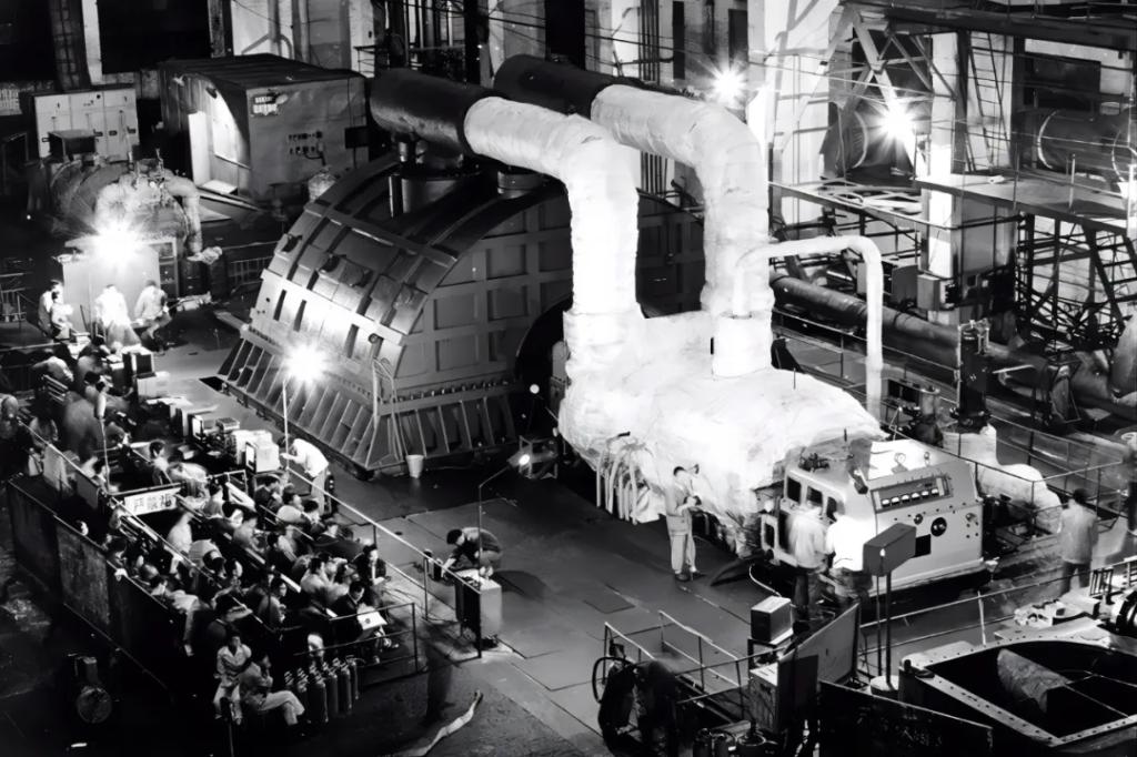 该汽轮机1983年在集团公司所属企业pa旗舰厅官网汽轮机成功完成厂内试车,1987年在山东黄台并网发电。300兆瓦汽轮机退役后,企业将汽轮机核心部件低压转子作为象征东汽精神的重要文物回收并陈列。中国第一台300兆瓦汽轮机的研制成功,标志并见证着我国机械工业和能源装备研制水平登上新台阶。