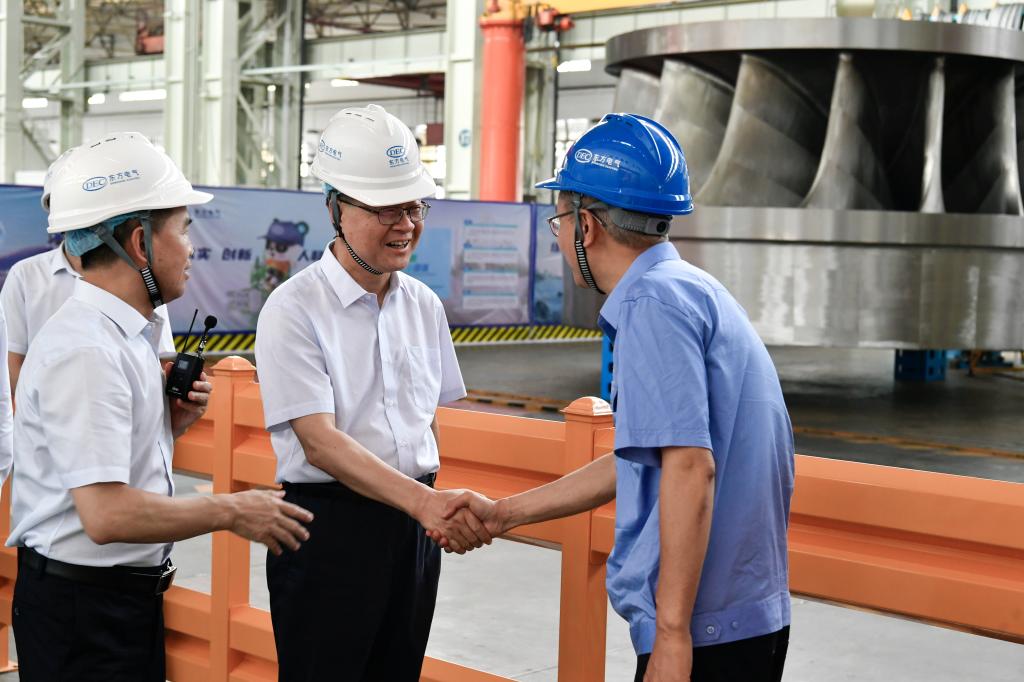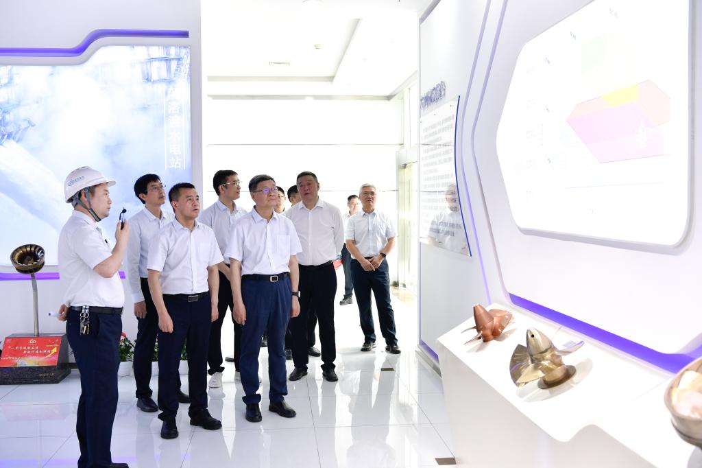 罗乾宜深入pa旗舰厅官网电机重型装备制造数字化车间、大型发电机生产车间、屏蔽泵事业部、绿色智能焊接数字化车间、定子冲片绿色“无人车间”、水力试验室、“东电印迹”工业历史文化园,实地调研pa旗舰厅官网电机发展历程、项目履约、车间工艺布局、智改数转、科研平台建设等情况。