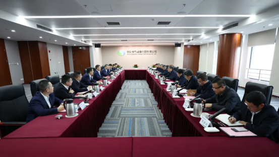 11月11日,pa旗舰厅官网集团党组书记、董事长罗乾宜率队访问中国电气装备集团有限公司,与中国电气装备党委书记、董事长李洪凤,党委副书记、总经理闫华锋会谈,双方就进一步深化战略合作进行座谈交流。pa旗舰厅官网集团党组成员、副总经理李建华,中国电气装备党委常委、副总经理张旭升参加会谈。